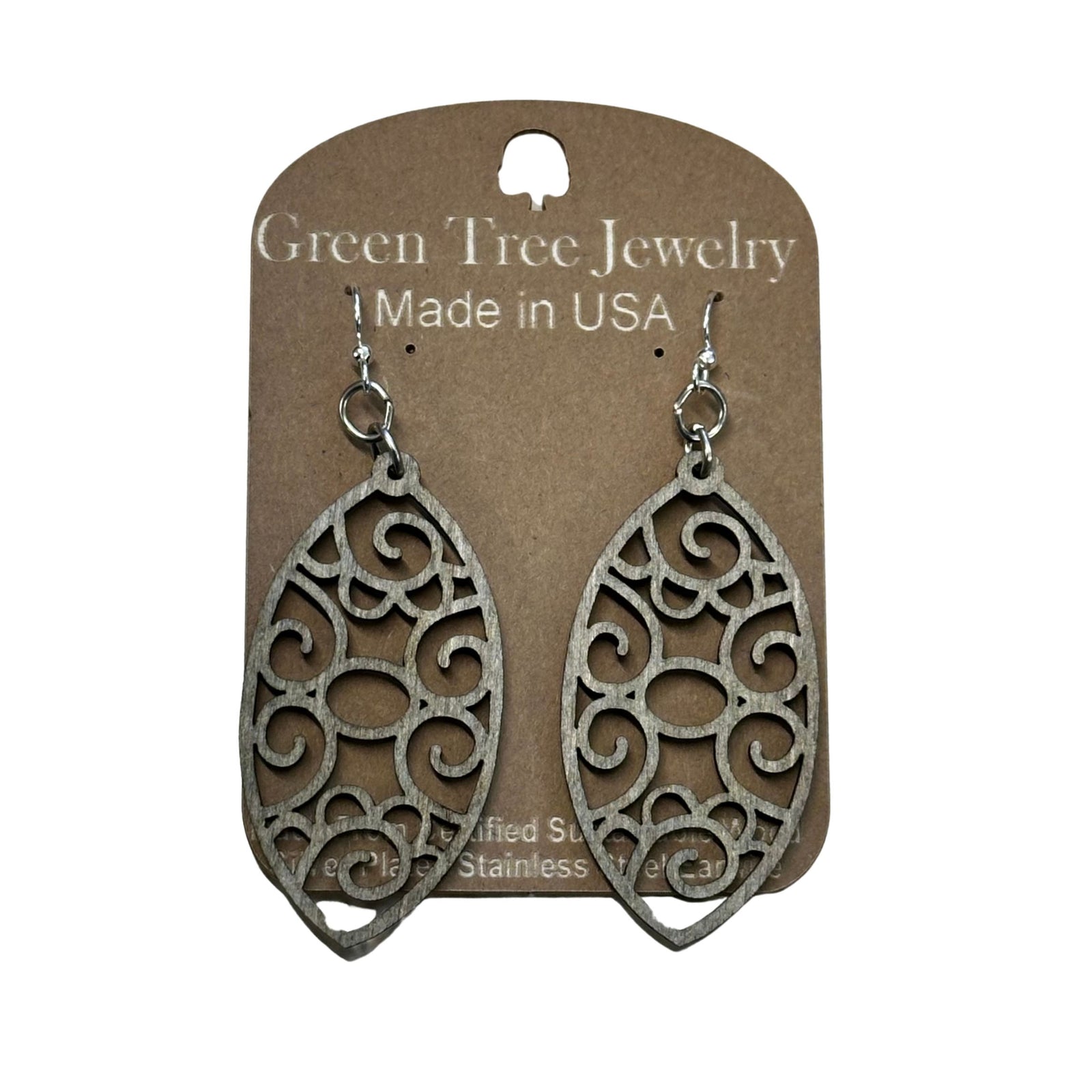 Filigree Oval 1712 Wood Earrings