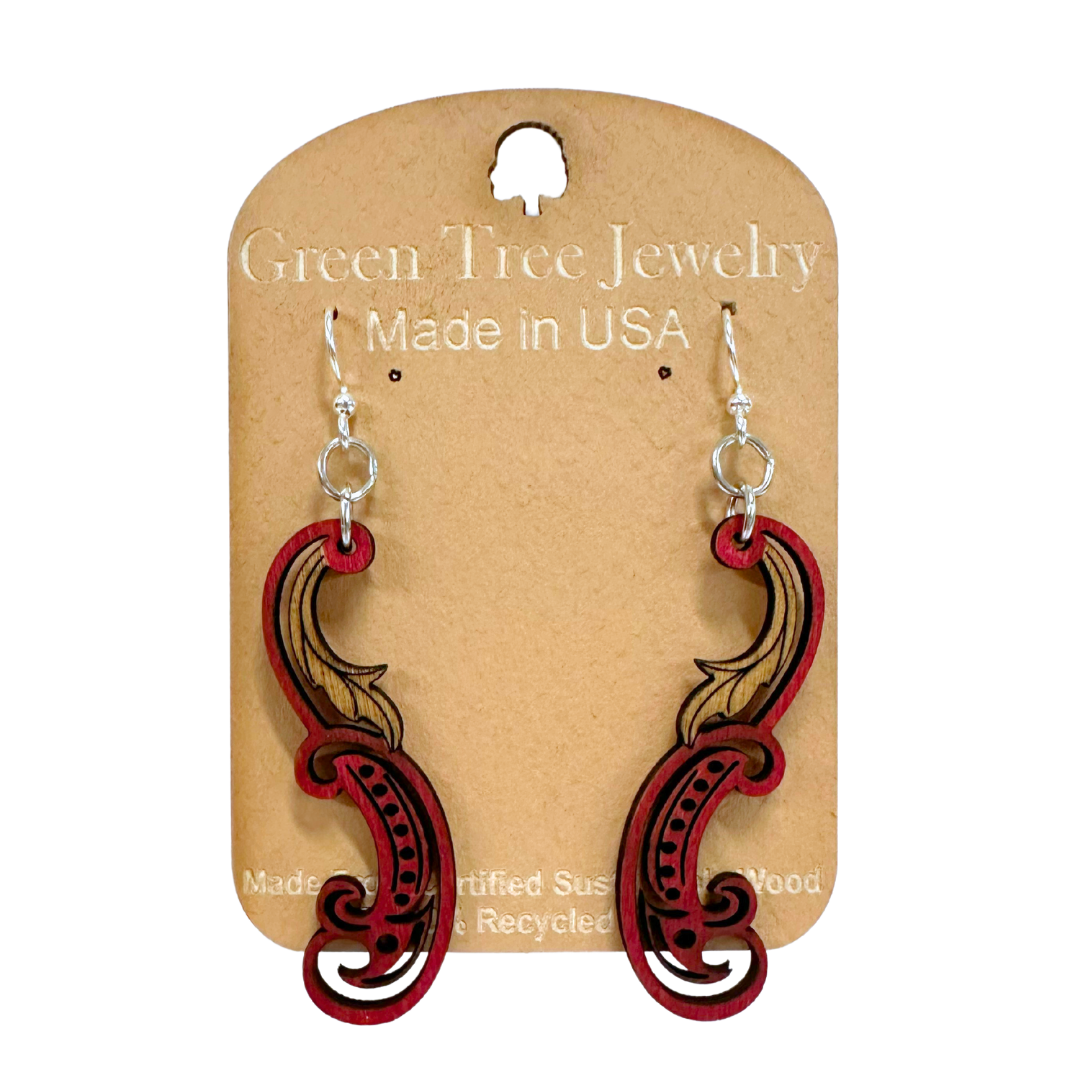 Paisley Leaf 1512 Wood Earrings