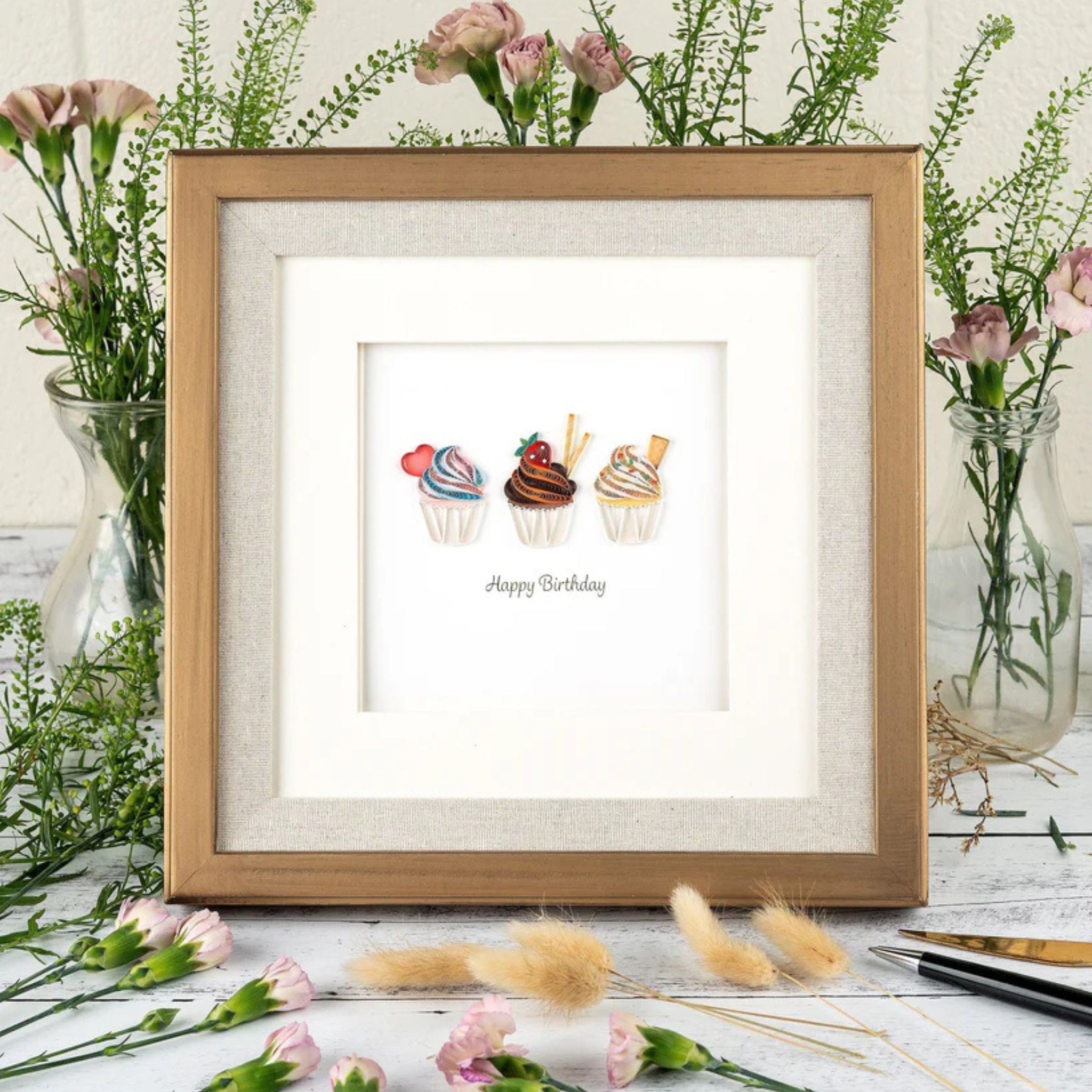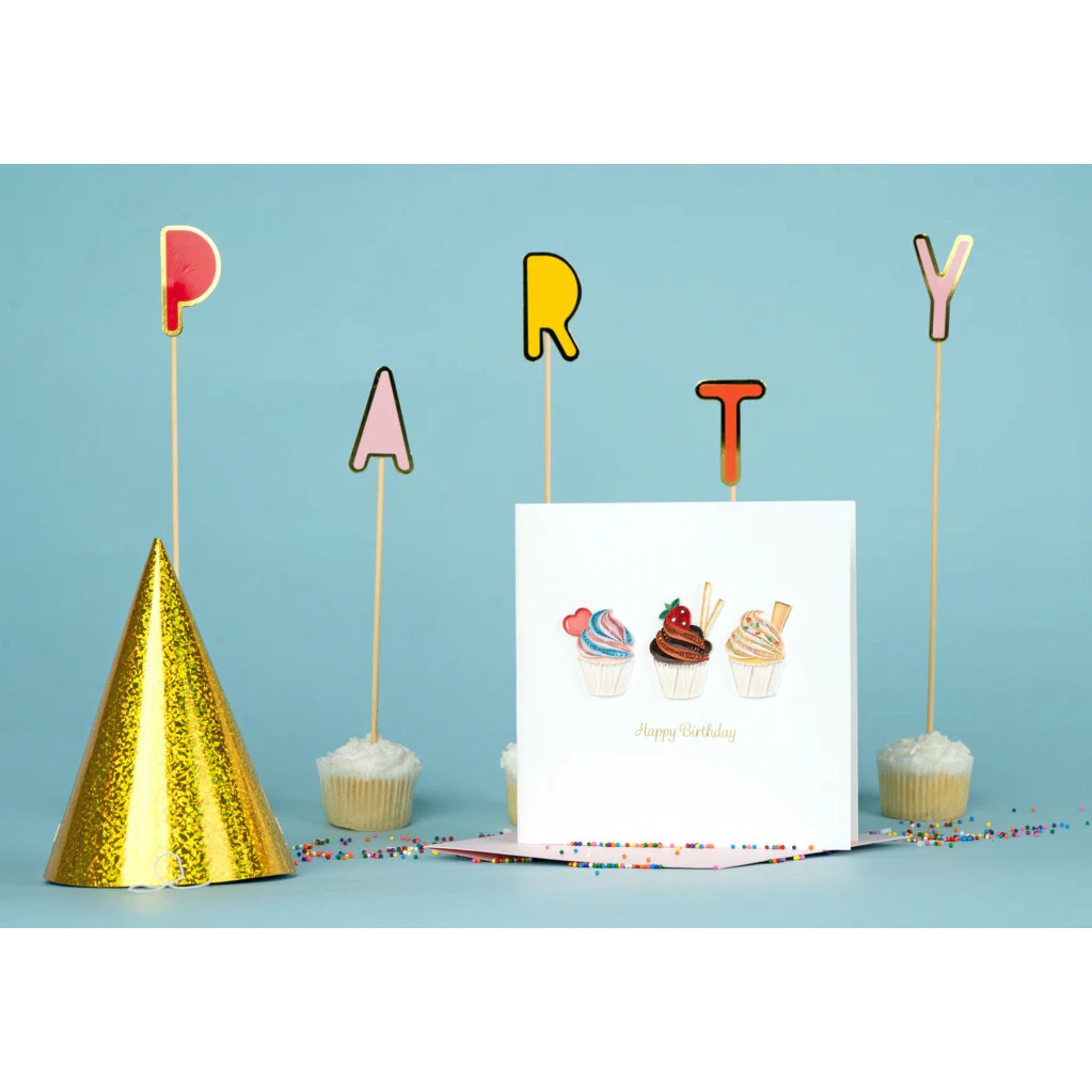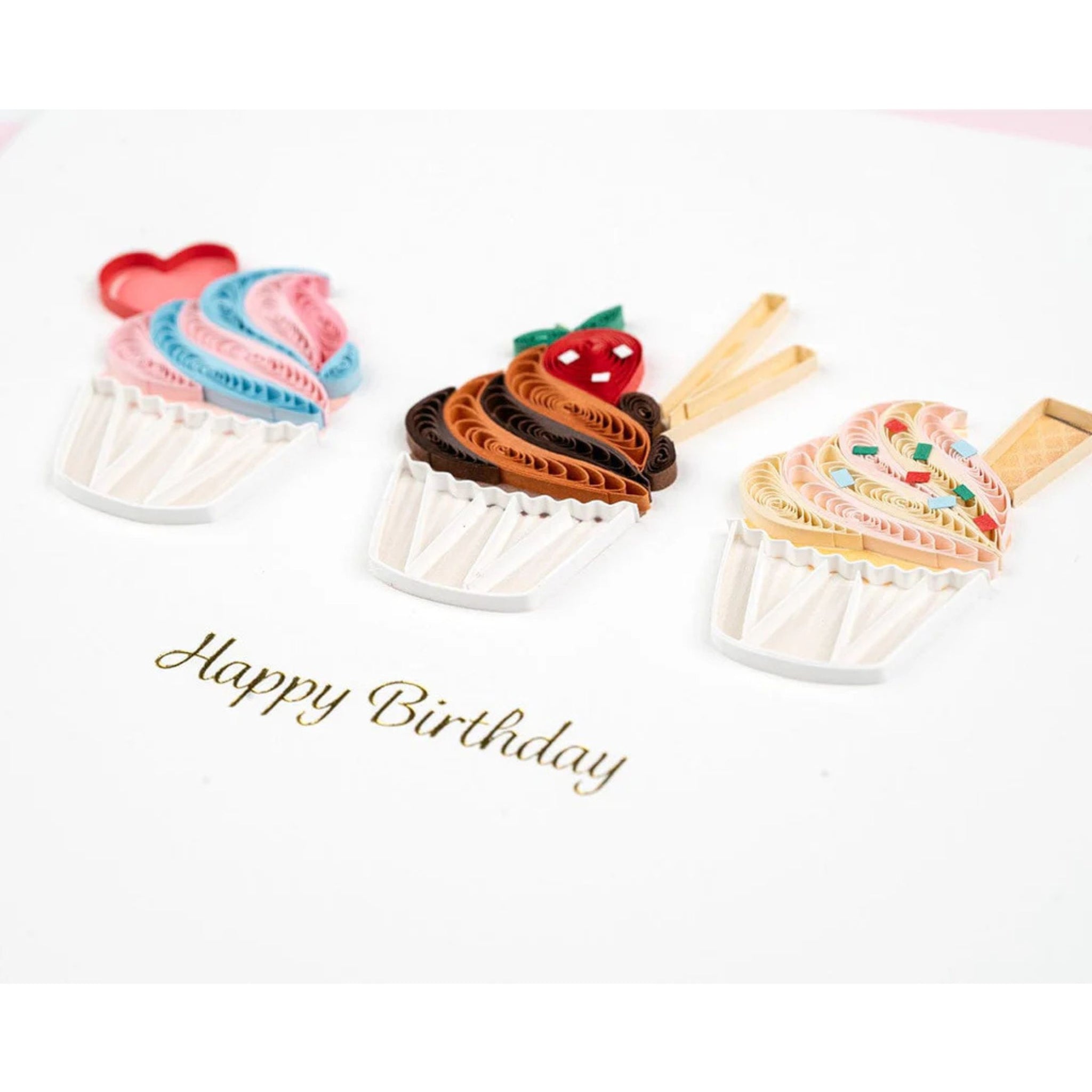 Share some sweet treats with a friend! The handcrafted trio of cupcakes will delight all taste buds with colorful frosting and candy decorations this sweet treat will hit the right spot. This card is a beautiful keepsake and perfect for framing.