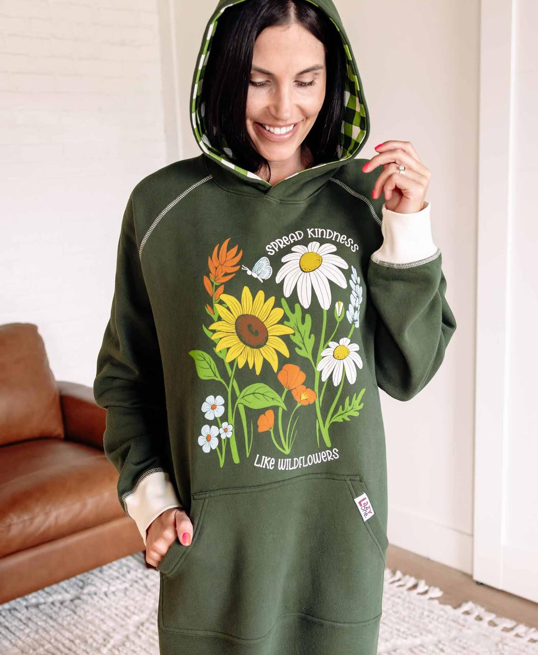 We are ready to spread around warm and comfort with our Wild Flowers sleep hoodie. This sleep hoodie features the cute saying of Spread Kindness like wild flowers with a cute assortment of different flowers. Our Wild Flowers sleep hoodie is perfect for any plant lady in your life.
